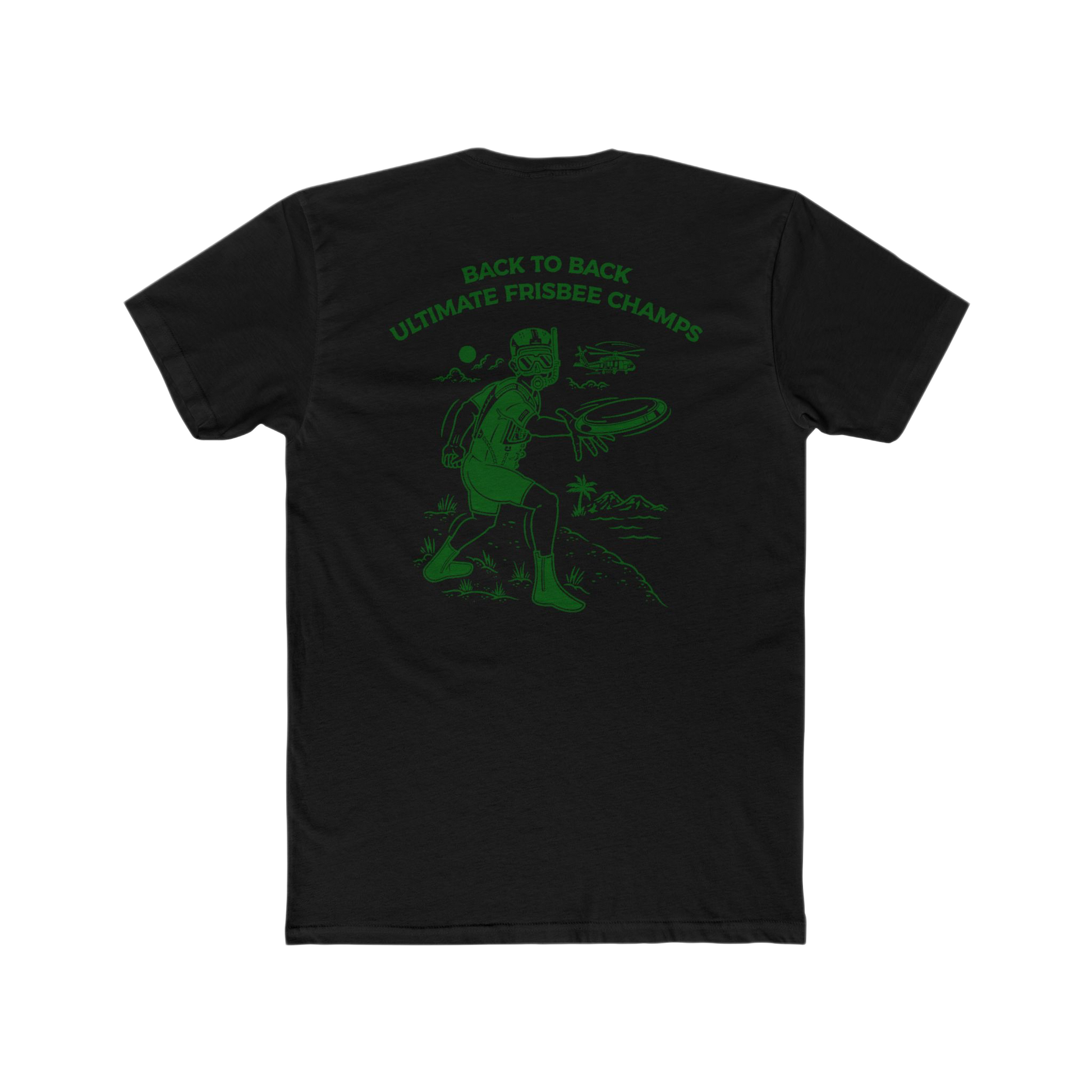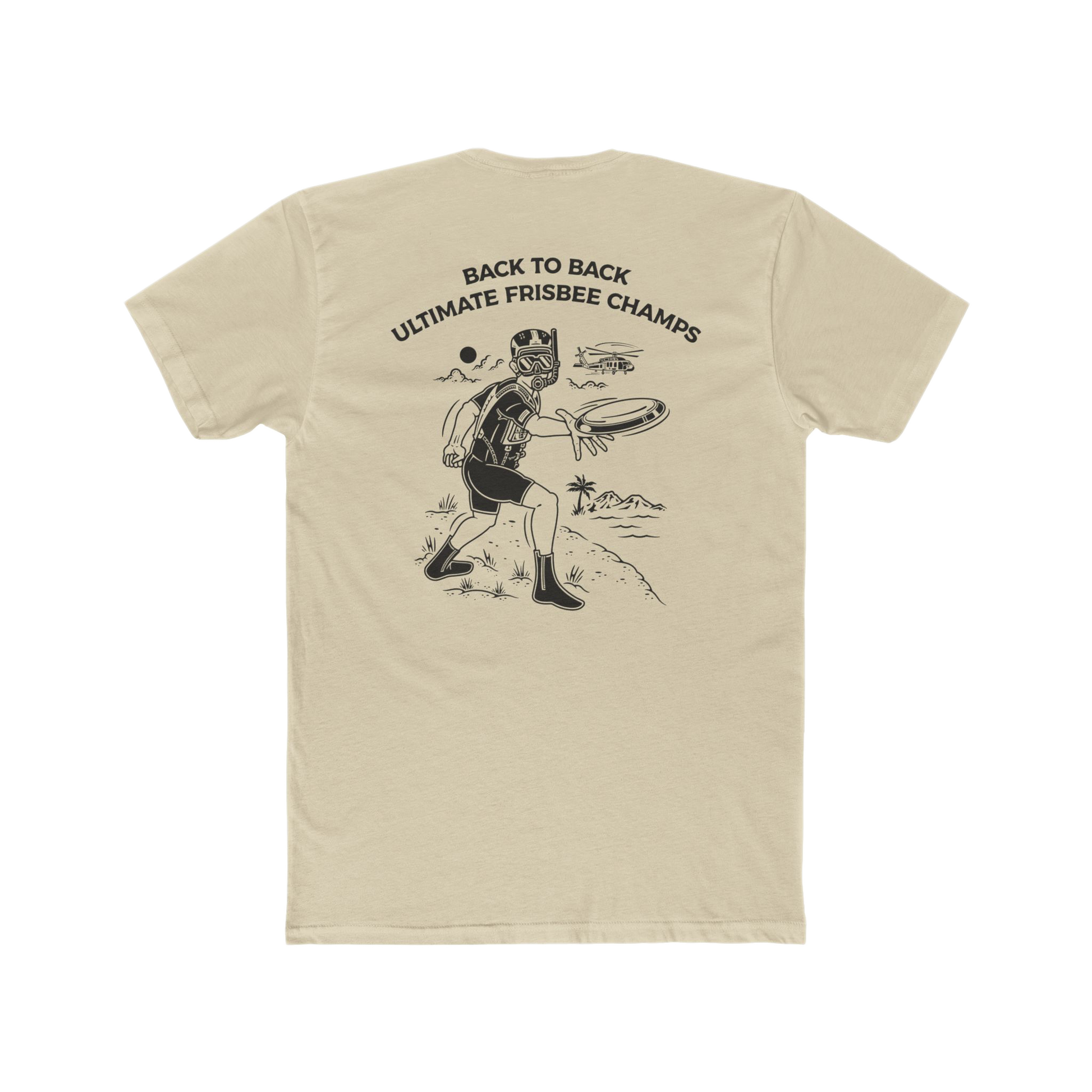 Lightweight and breathable, this classic crew tee carries a playful, sports-club spirit. A small, clean chest emblem pairs with a bold back illustration of a focused frisbee player mid-throw, framed by the rallying slogan “Back to Back Ultimate Frisbee Champs.” The soft cotton body and neat crew neckline make it easy to layer under hoodies or wear solo on sunny practice days. Subtle sleeve prints add extra character without overpowering the vintage, athletic vibe. Wear it to local tournaments, post-game hangs, or whenever you want a shirt that reads like a badge of weekend devotion to the disc.
